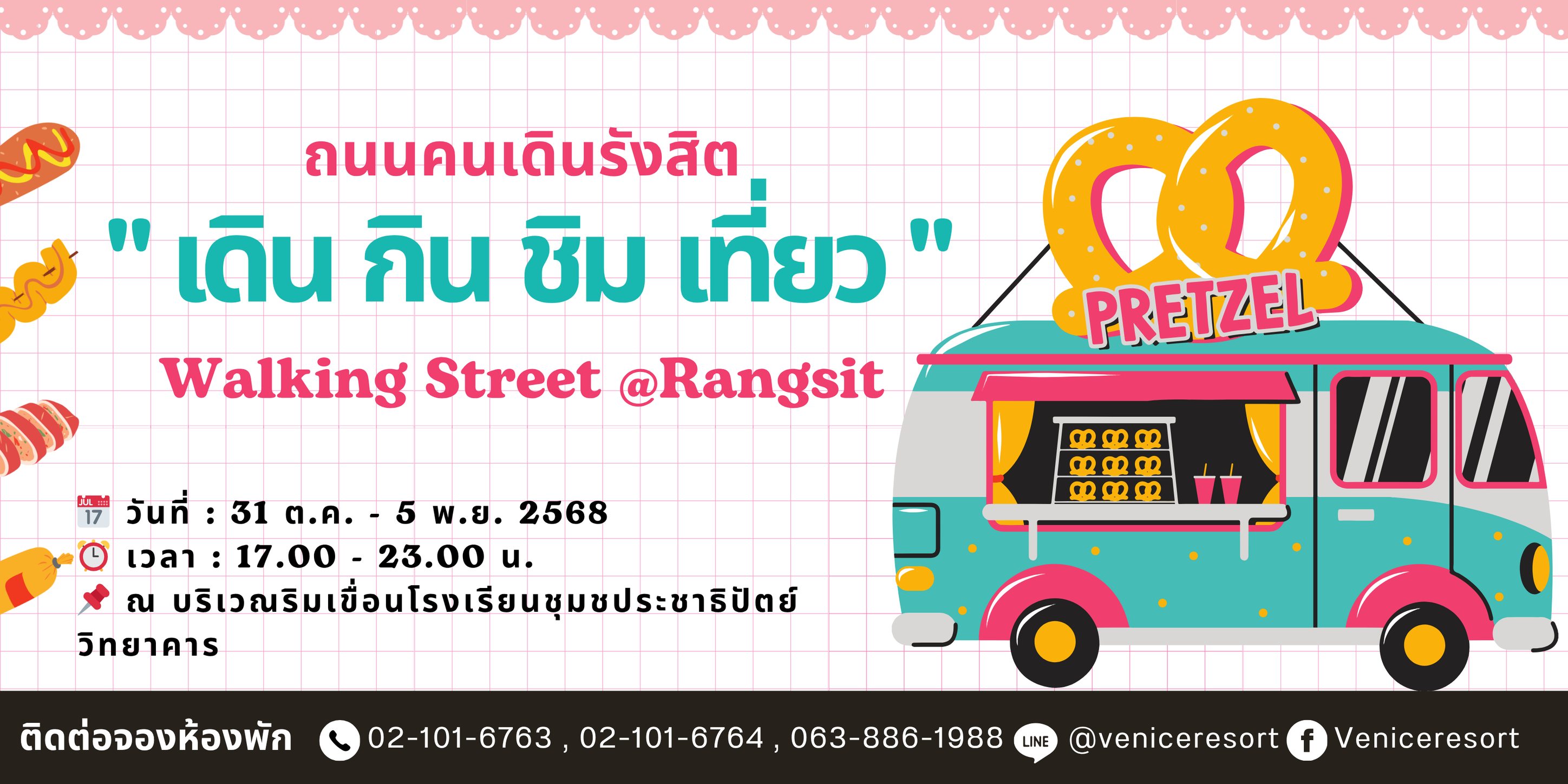 และสำหรับใครที่กำลังวางแผนมาเข้าร่วมกิจกรรม “เดิน กิน ชิม เที่ยว” ถนนคนเดินรังสิต  และมองหาที่พักผ่อนใกล้สถานที่จัดงาน ขอแนะนำ Venice Resort ที่พักลำลูกกาห้องพักรายวันรังสิต ที่พักหลักร้อยรังสิต ที่พักราคาถูกรังสิต ห้องพักใกล้มหาวิทยาลัยรังสิต ที่พักติดถนนรังสิต ห้องพักพร้อมที่จอดรถรังสิต ที่พักสไตล์รีสอร์ตบรรยากาศสงบ เป็นส่วนตัว พร้อมสิ่งอำนวยความสะดวกครบครัน เดินทางสะดวกจากลำลูกกา มีที่จอดรถ บรรยากาศร่มรื่น เหมาะสำหรับการพักผ่อนก่อนหรือหลังวิ่งไม่ว่าจะมาเดี่ยว มาเป็นกลุ่ม หรือพาครอบครัวมาเที่ยว Venice Resort ห้องพักลำลูกกาก็พร้อมต้อนรับด้วยบริการอบอุ่น